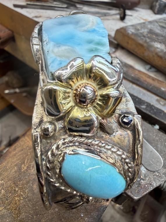 Unlike commercial design houses where ownership is diffuse or hands-off, Lisa Christiansen’s Blue Wolf Fine Jewelry’s authenticity comes directly from Lisa. She is the single guiding vision, overseeing every sketch, choosing every stone, and hammering out each intricate detail. At times, her husband, master jeweler Robert McFall Jr., will lend his expertise and support—but Blue Wolf Fine Jewelry remains under Lisa’s direction, her narrative woven into every piece. Her hand is evident in her work’s technical prowess and artistic coherence; her soul is apparent in its spirit.
